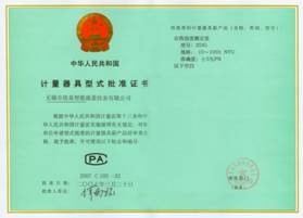 型式批準(zhǔn)證書(江蘇省質(zhì)量監(jiān)督局發(fā)) |